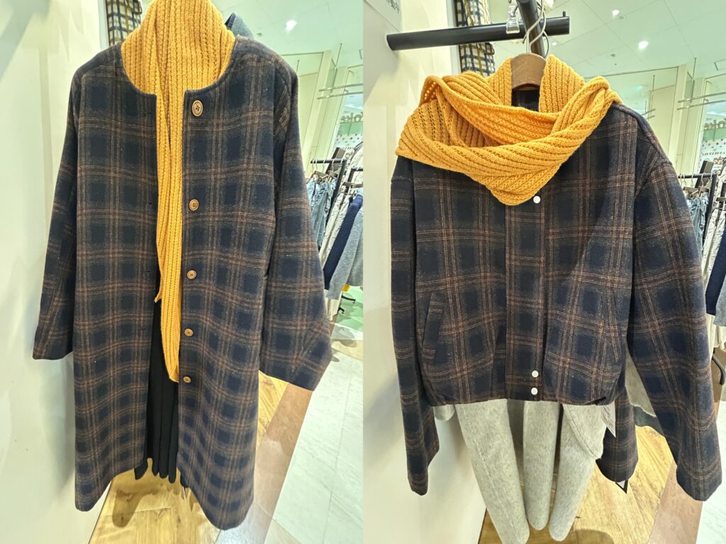 今回ご紹介するのは、落ち着いたチェック柄が上品なロングコートとショートジャケット。