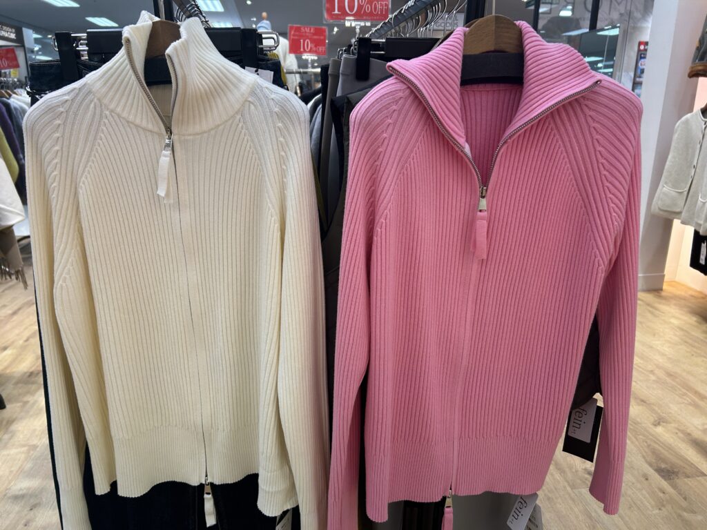 そんな今の季節におすすめしたいのが、こちらのダブルジップ仕様のリブカーディガンです。