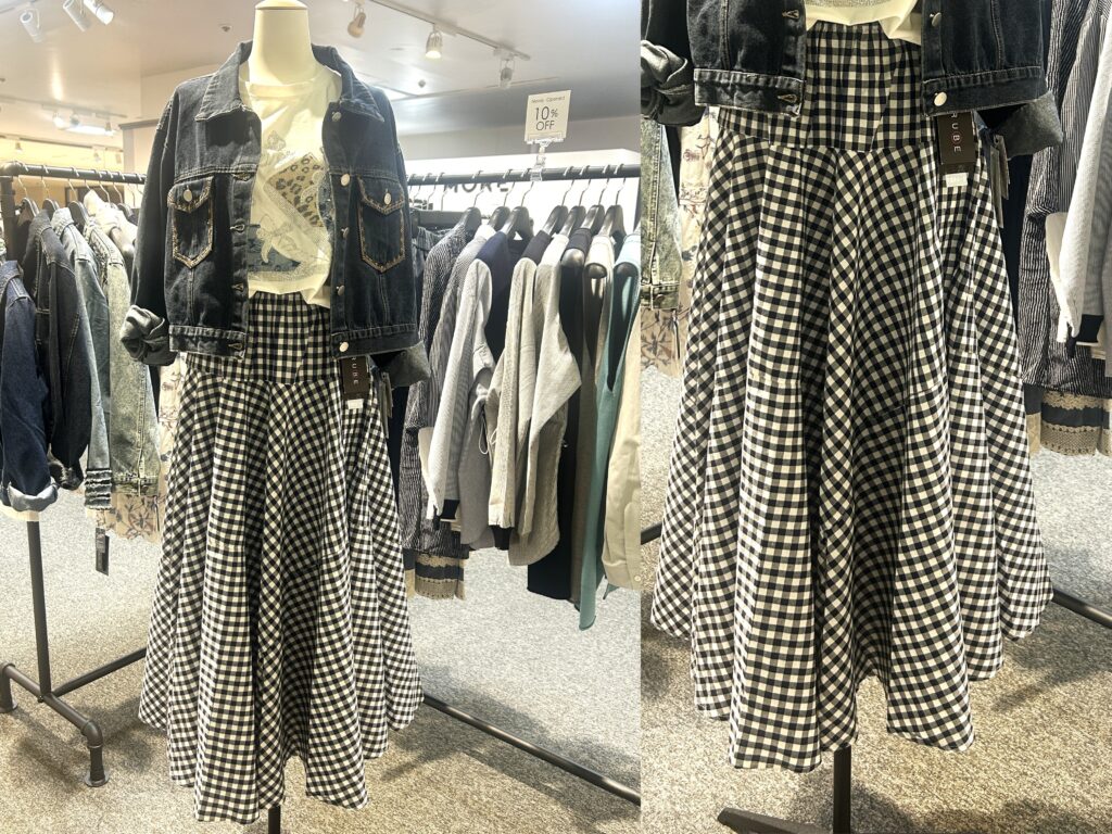今日ご紹介するのは、爽やかな印象が魅力のギンガムチェックのフレアスカート。