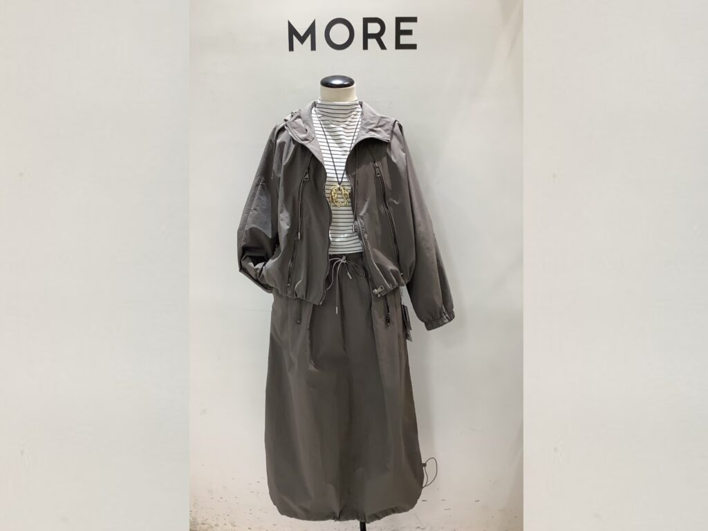 今日ご紹介するのはZIPブルゾンのジャケットとスカート(別売り)のセットアップ。